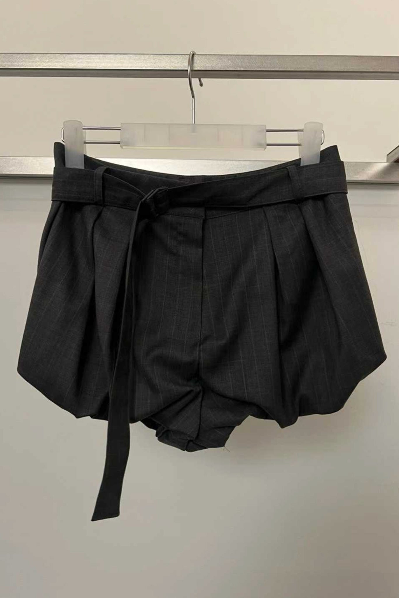These bubble pinstripe shorts offer a playful yet polished take on tailoring. Designed with a voluminous silhouette, subtle pleating, and an elasticized waistband with adjustable ties, they balance structure with ease. Cut from lightweight pinstripe fabric, they pair seamlessly with the matching boxy jacket for a coordinated look, or can be styled alone for effortless versatility.