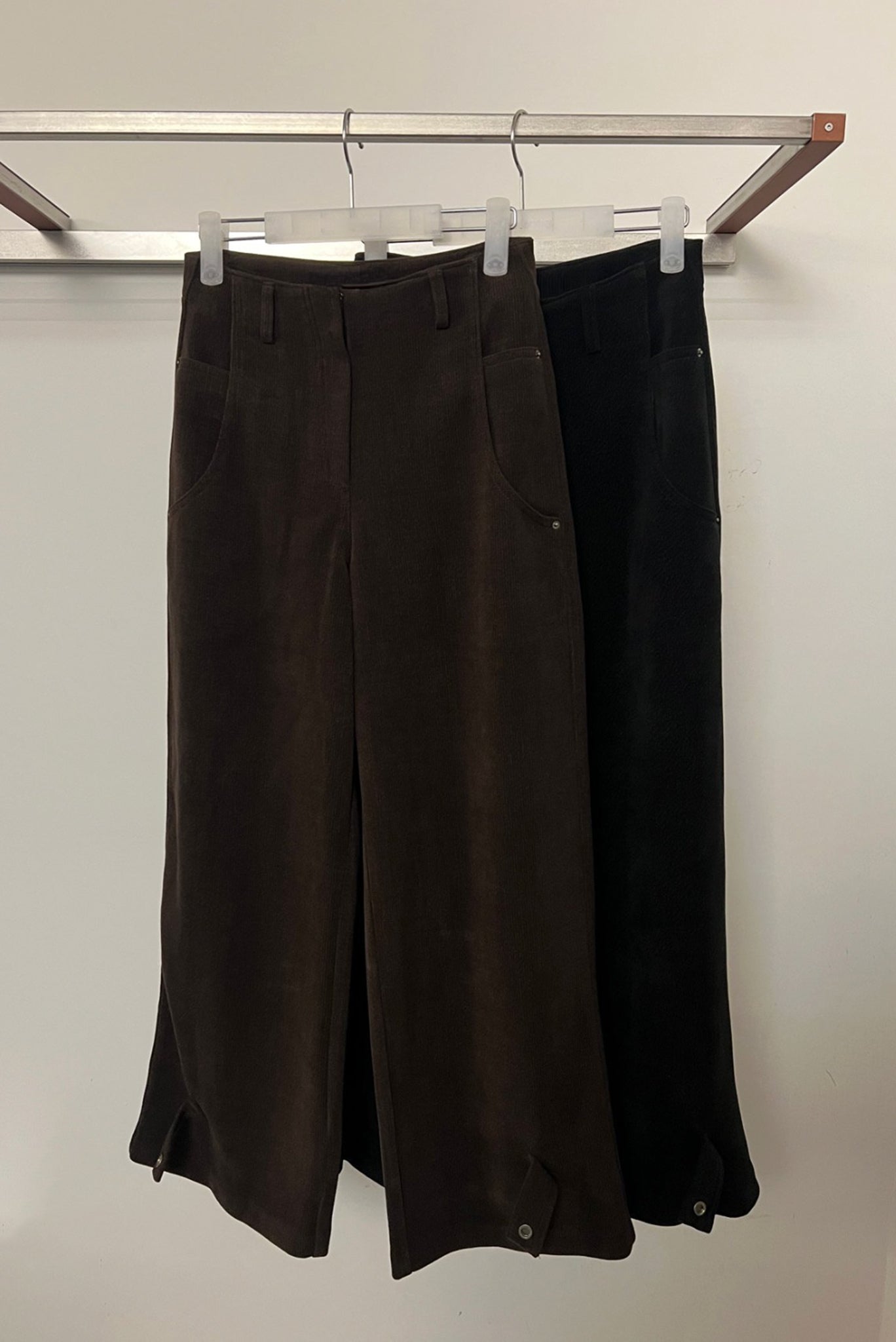 Relaxed, wide-leg corduroy pants in chocolate brown. Effortlessly tailored for comfort with subtle texture and drape.