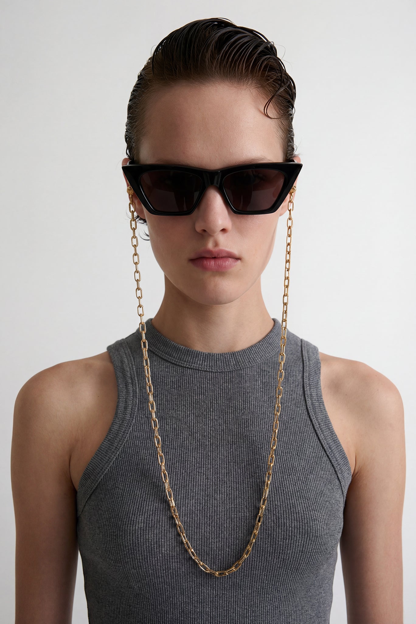 Gold plated 27" chain with gold plated clips by Eliou.