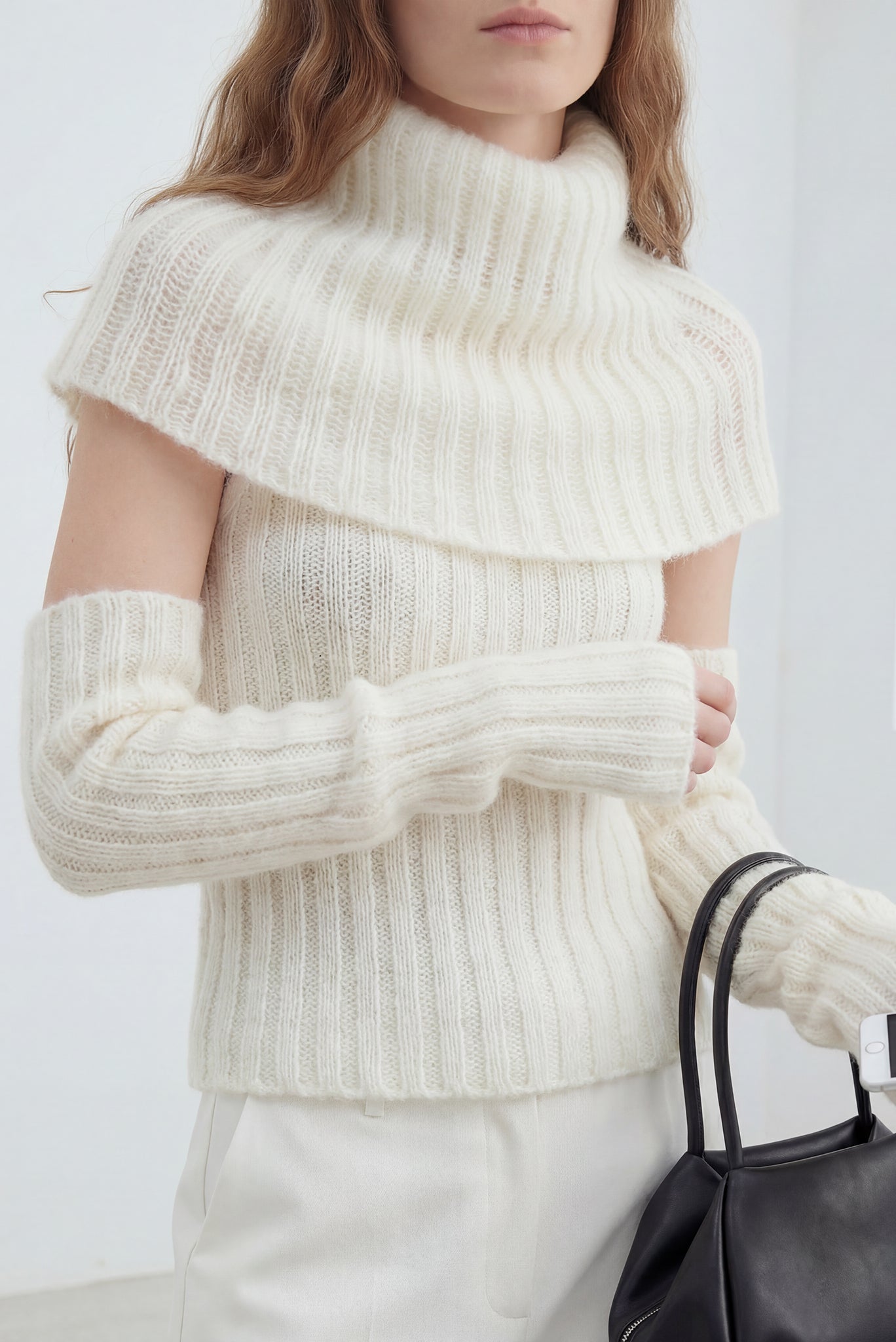 Chunky ribbed knit sleeves designed to be worn alone or paired with the Alpaca Neckwarmer Top. Adds a layered, textural element to cool-weather looks.