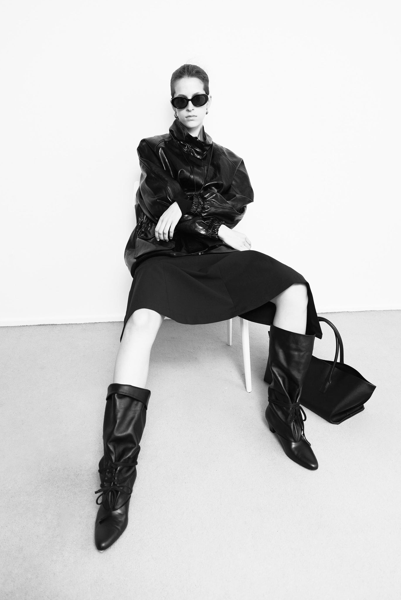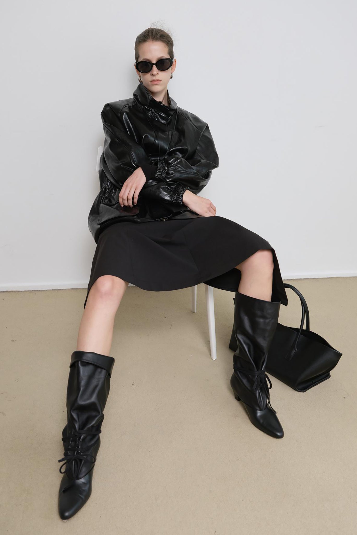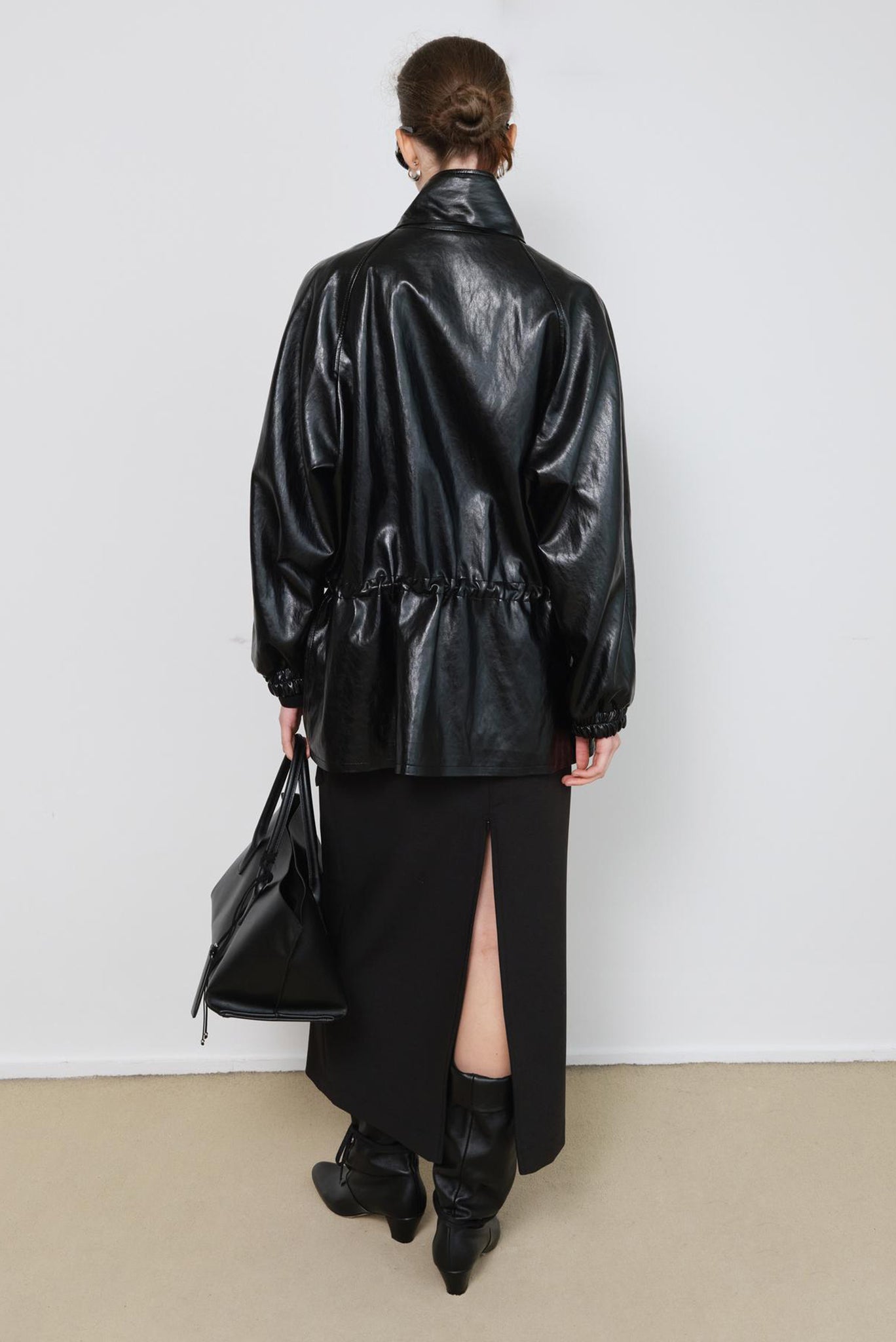 A bold yet refined take on outerwear, this oversized burgundy faux leather jacket is designed with a cinched waist and utility pocket detailing. Crafted from supple leather with a rich burgundy finish, it combines structure with fluidity for a modern silhouette. The high collar and relaxed proportions make it versatile for layering, while the deep tone adds timeless sophistication.